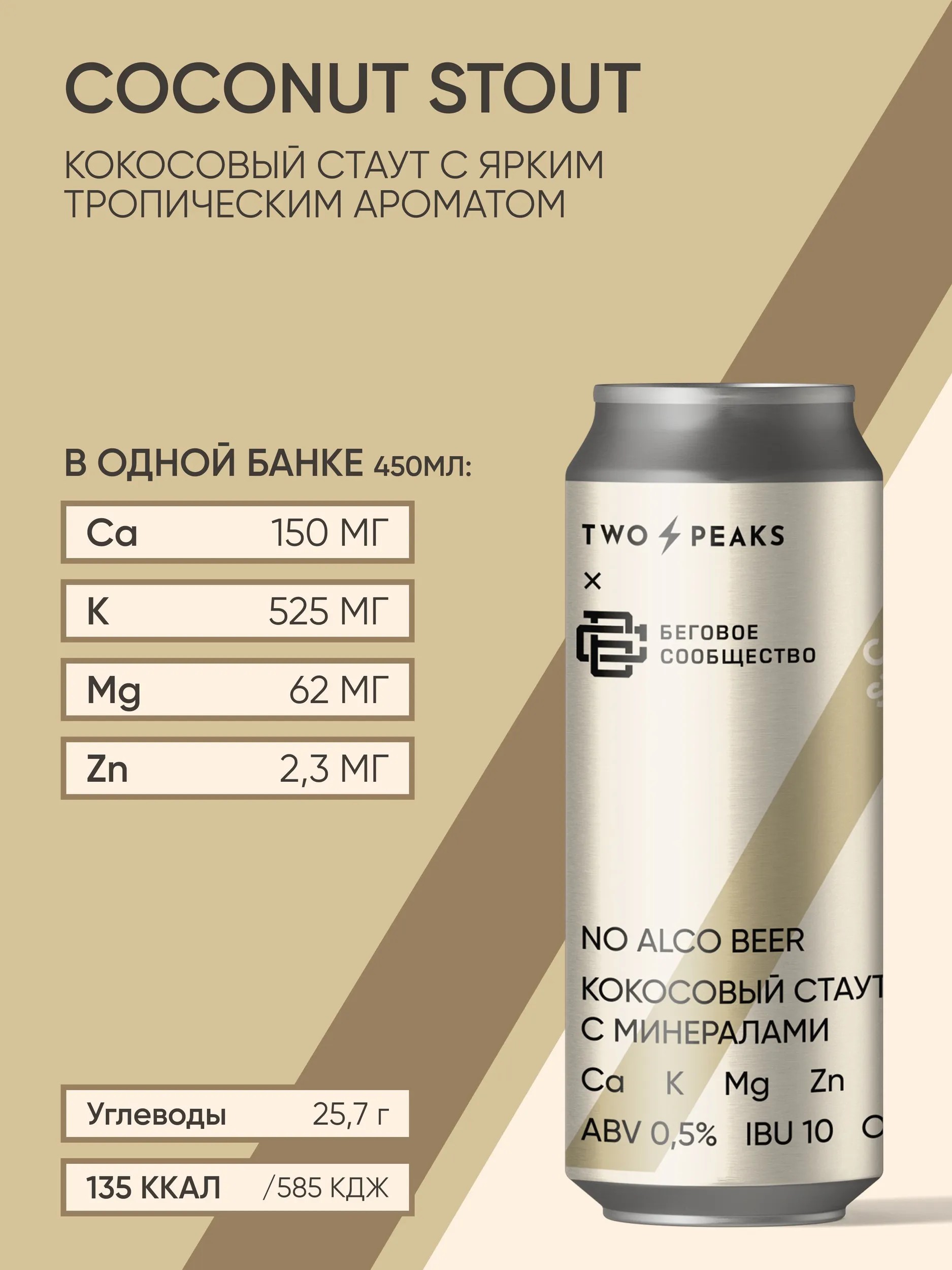 Two Peaks Х Беговое сообщество Безалкогольное пиво Coconut Stout, 0.45л